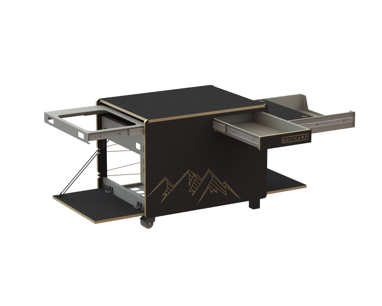 Uniwersalna platforma montowana na koło zapasowe to solidna, polska konstrukcja umożliwiająca przewóz cięższych i zabrudzonych przedmiotów poza kabiną pojazdu. Dzięki regulacji i stabilnym mocowaniom sprawdzi się zarówno w terenie, jak i na co dzień. Odkręcana przednia część umożliwia transport większych ładunków.